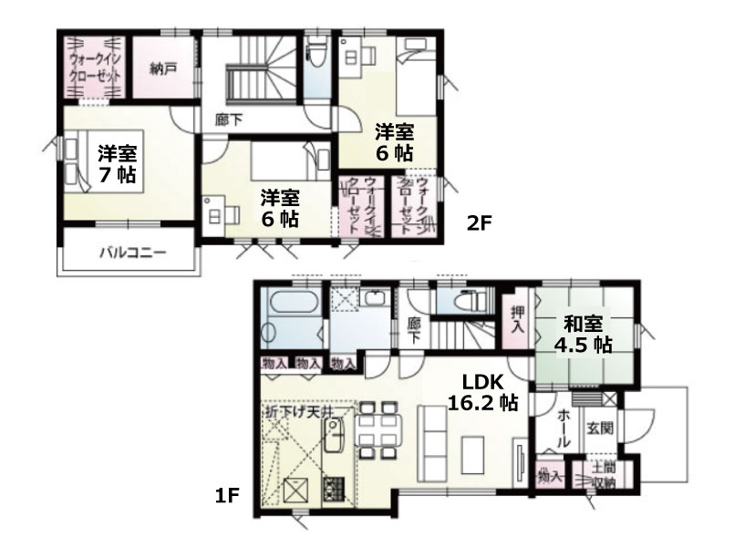 | 土地面積/建物面積/間取り | 土地面積:約56.67坪(187.35㎡) 建物面積:約 32.81坪(108.47㎡)/4LDK |
